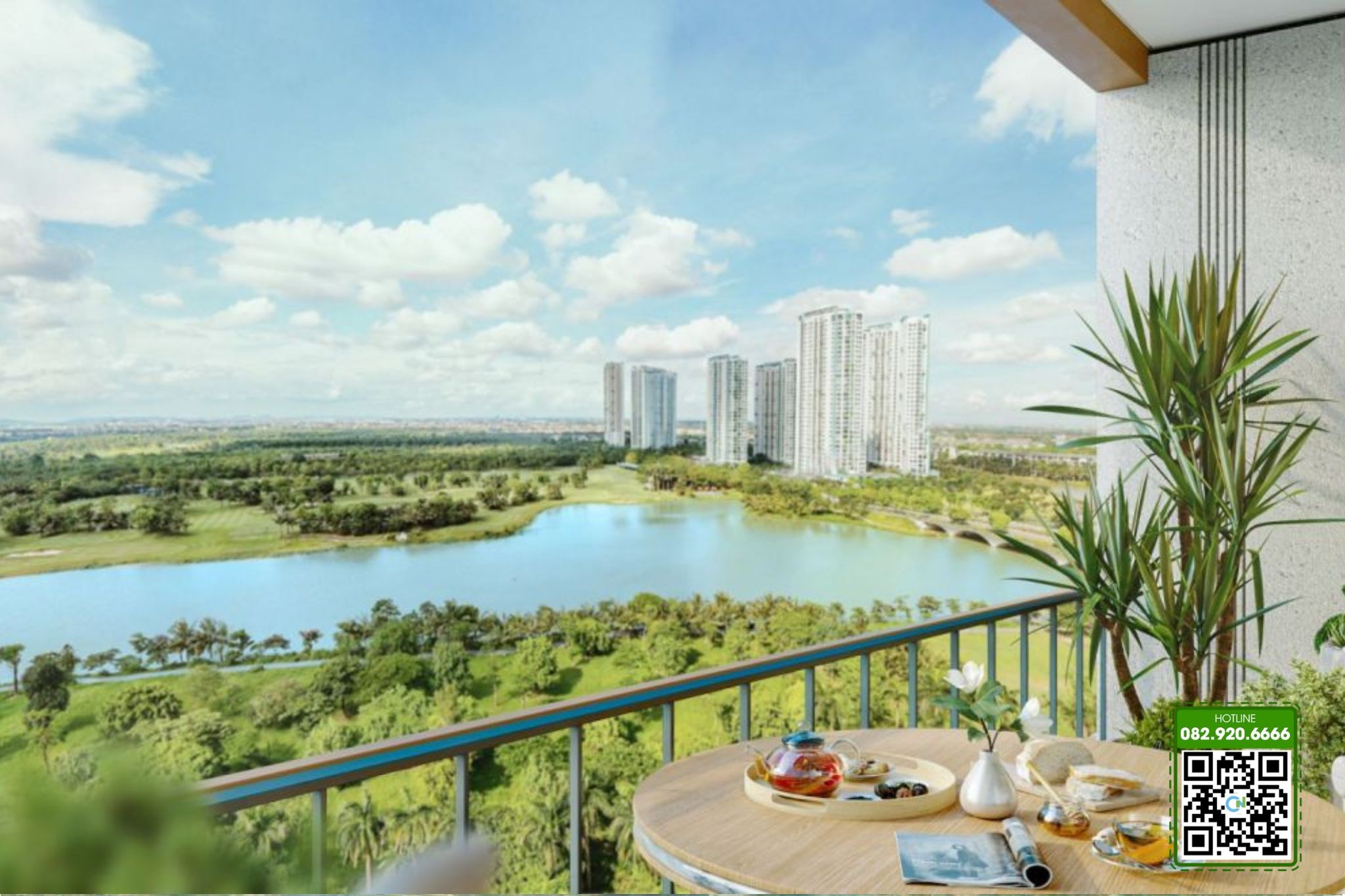 Ban công rộng, view công viên – hồ nước